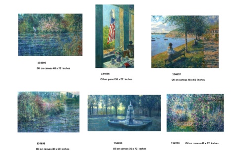 134695 Oil on canvas 48 x 72 inches 134696 134697 Oil on panel 36 x 22 inches Oil on canvas 48 x 60 inches 134698 134699 134700 Oil on canvas 48 x 72 inches Oil on canvas 40 x 60 inches Oil on canvas 36 x 72 inches