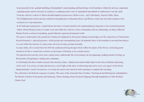 In all faiths past and present, a central theme has been a Creation narrative the understanding by humanity is the existential position