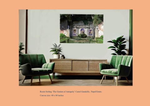 Room Setting ‘The Garden of Antiquity’ Castel Gandolfo, Papal Estate. Canvas size: 40 x 60 inches