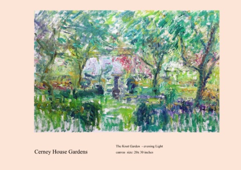 The Knot Garden - evening Light Cerney House Gardens canvas size: 20x 30 inches