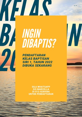 KELASBAPTISAN2022 INGIN DIBAPTIS? 6/14 PENDAFTARAN KELAS BAPTISAN SIRI 1, TAHUN 2022 DIBUKA SEKARANG SILA WHATSAPP SIS MARCELLA DI 012-8289586 UNTUK PENDAFTARAN