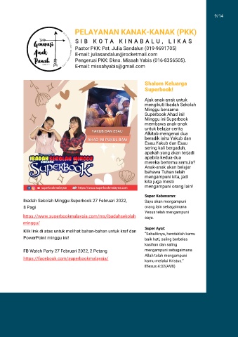 Pastor PKK: Pst. Julia Sandalun (019-9691705)