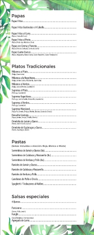 (Papas Pai, Jamón, Arvejas, Morrón, Banana, Crema de Choclo)
