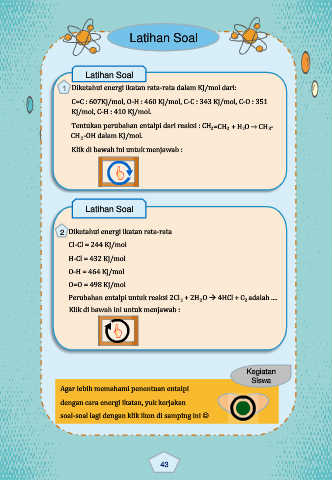 1 Diketahui energi ikatan rata-rata dalam KJ/mol dari: