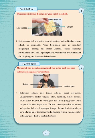 (lingkungan) menuju mie instan (sistem). Reaksi terjadinya