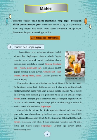 Mempelajari sistem dan lingkungan dapat diamati dari es teh yang