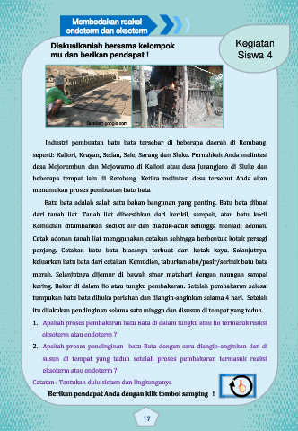 1. Apakah proses pembakaran batu Bata di dalam tungku atau lio termasuk reaksi
