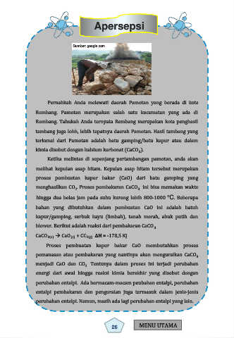 Proses pembuatan kapur bakar CaO membutuhkan proses