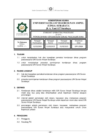 3.1. Kendaraan dinas adalah kendaraan milik UIN Sunan Ampel Surabaya berupa