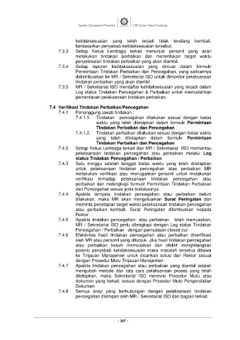 7.4.4 Apabila ternyata tindakan pencegahan atau perbaikan belum