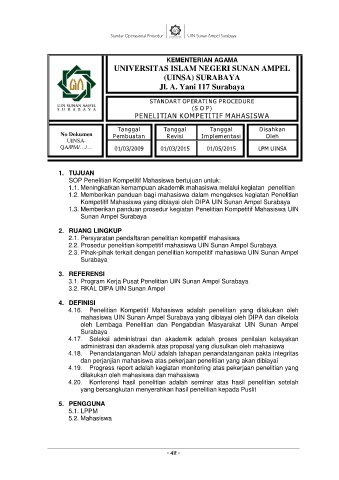 SOP Penelitian Kompetitif Mahasiswa bertujuan untuk: