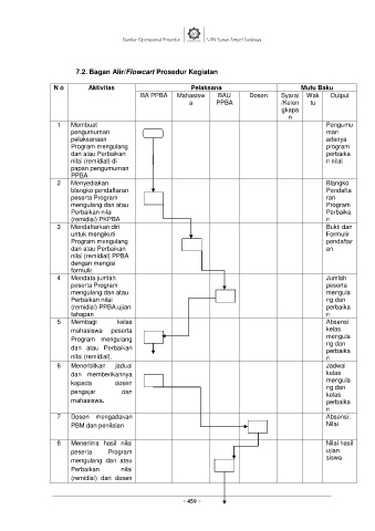 N o Aktivitas Pelaksana Mutu Baku