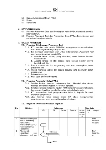 6.1 Prosedur Placement Test dan Pembagian Kelas PPBA dilaksanakan sekali