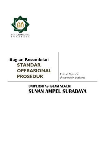 Bagian Kesembilan STANDAR OPERASIONAL Ma’had Al-Jami’ah PROSEDUR (Pesantren Mahasiswa) UNIVERSITAS ISLAM NEGERI SUNAN AMPEL SURABAYA