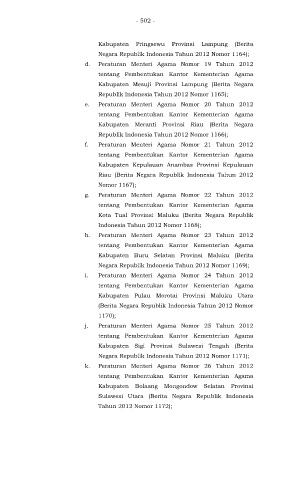g. Peraturan Menteri Agama Nomor 22 Tahun 2012