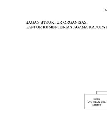 - 631 - BAGAN STRUKTUR ORGANISASI KANTOR KEMENTERIAN AGAMA KABUPATEN LANNY JAYA Kantor Kementerian Agama Kabupaten/Kota Sub Bagian Tata Usaha Seksi Seksi Urusan Agama Seksi Bimbingan Kristen Pendidikan Kristen Masyarakat Katolik