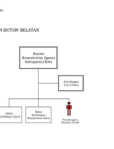 - 636 - BAGAN STRUKTUR ORGANISASI KANTOR KEMENTERIAN AGAMA KABUPATEN BUTON SELATAN Kantor Kementerian Agama kabupaten/Kota Sub Bagian Tata Usaha Seksi Seksi Pendidikan Islam Bimbingan Masyarakat Islam Penyelenggara Haji dan Umrah