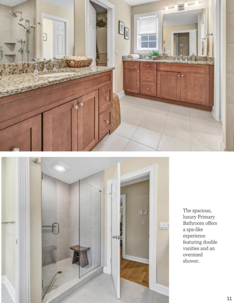 The spacious, luxury Primary Bathroom offers a spa-like experience featuring double vanities and an oversized shower. 11
