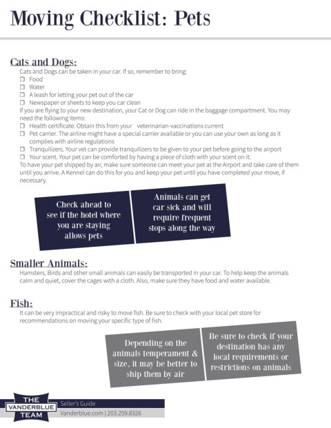 Cats and Dogs can be taken in your car. If so, remember to bring: