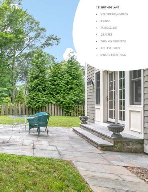131 NUTMEG LANE • 5 BEDROOMS/4.5 BATH • 4,908 SF. • TAXES $21,857 • .29 ACRES • TURN KEY PROPERTY! • 3RD LEVEL SUITE • MINS TO EVERYTHING