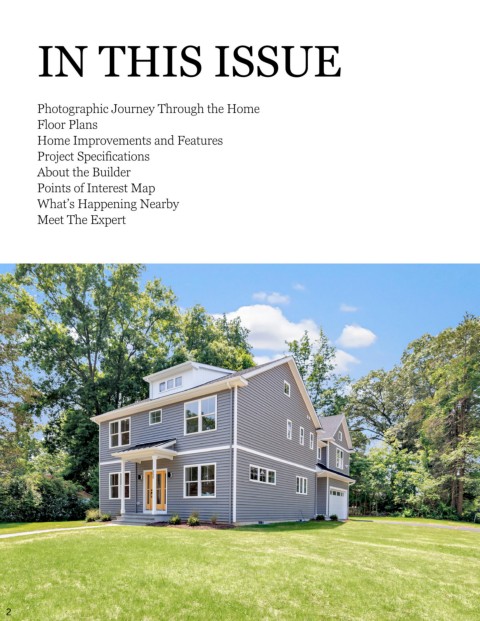 IN THIS ISSUE Photographic Journey Through the Home Floor Plans Home Improvements and Features Project Specifications About the Builder Points of Interest Map What’s Happening Nearby Meet The Expert 2