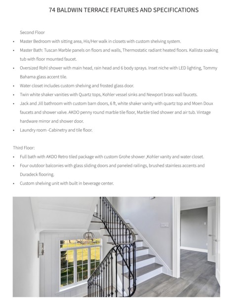 74 BALDWIN TERRACE FEATURES AND SPECIFICATIONS