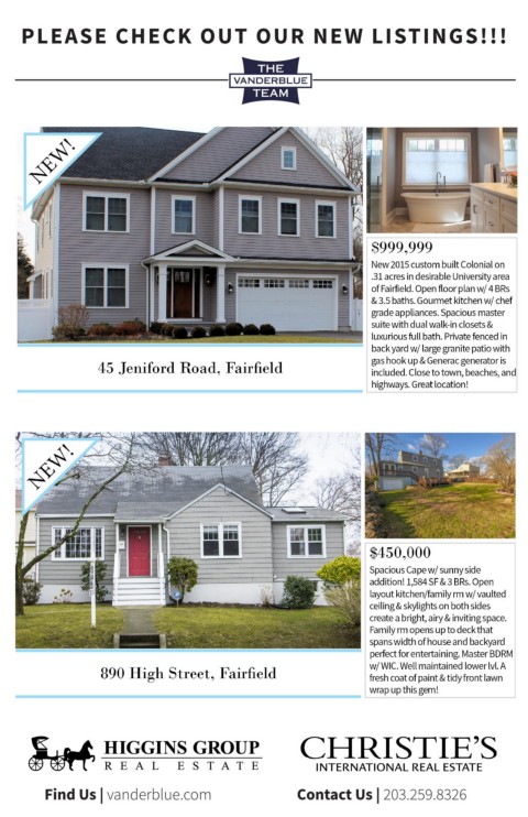 PLEASE CHECK OUT OUR NEW LISTINGS!!! Find Us | vanderblue.com Contact Us | 203.259.8326