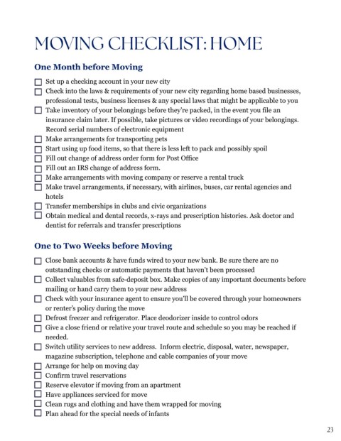 MOVING CHECKLIST: HOME