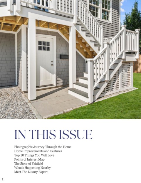 IN THIS ISSUE Photographic Journey Through the Home Home Improvements and Features Top 10 Things You Will Love Points of Interest Map The Story of Fairfield What’s Happening Nearby Meet The Luxury Expert 2