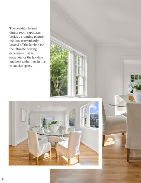 The beautiful formal dining room captivates beside a stunning picture window conveniently located off the kitchen for the ultimate hosting experience. Easily entertain for the holidays and host gatherings in this expansive space. 8
