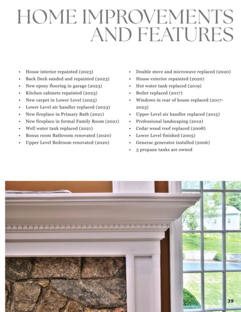 • New fireplace in Primary Bath (2021) • Upper Level air handler replaced (2015)