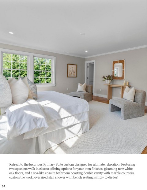 Retreat to the luxurious Primary Suite custom designed for ultimate relaxation. Featuring