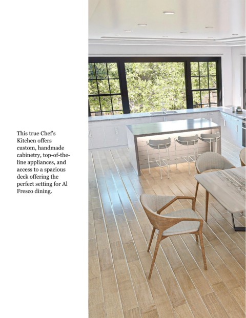 This true Chef’s Kitchen offers custom, handmade cabinetry, top-of-the- line appliances, and access to a spacious deck offering the perfect setting for Al Fresco dining.