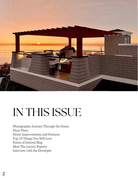 IN THIS ISSUE Photographic Journey Through the Home Floor Plans Home Improvements and Features Top 10 Things You Will Love Points of Interest Map Meet The Luxury Experts Interview with the Developer 2