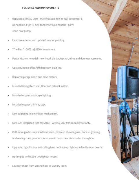 • Replaced all HVAC units - main house: 5-ton (R-410) condenser &