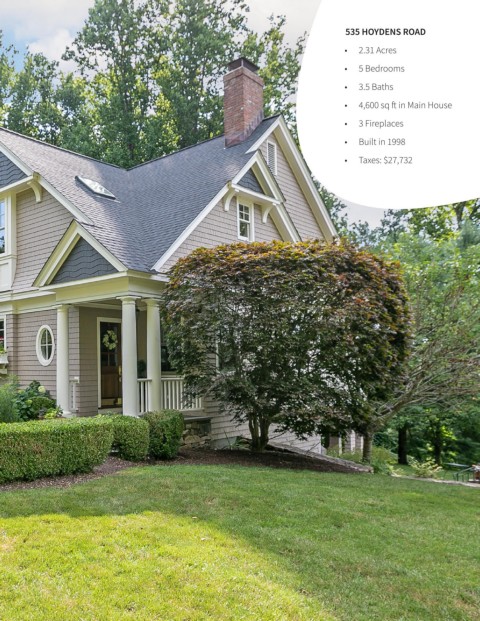 535 HOYDENS ROAD • 2.31 Acres • 5 Bedrooms • 3.5 Baths • 4,600 sq ft in Main House • 3 Fireplaces • Built in 1998 • Taxes: $27,732
