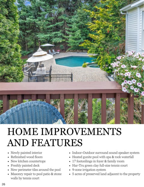 Refinished wood floors Heated gunite pool with spa & rock waterfall