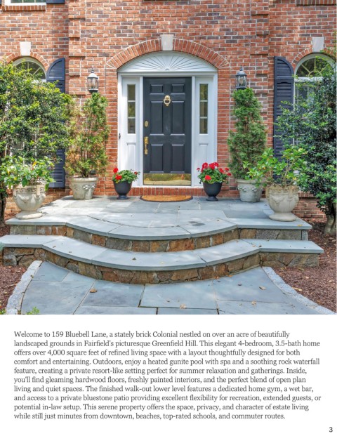 landscaped grounds in Fairfield’s picturesque Greenfield Hill. This elegant 4-bedroom, 3.5-bath home