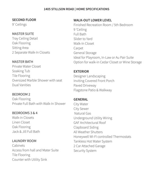 1405 STILLSON ROAD | HOME SPECIFICATIONS