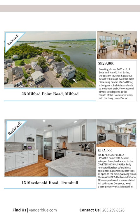 NEW PRICE REDUCTIONS Find Us | vanderblue.com Contact Us | 203.259.8326