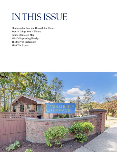 IN THIS ISSUE Photographic Journey Through the Home Top 10 Things You Will Love Points of Interest Map What’s Happening Nearby The Story of Bridgeport Meet The Expert 2