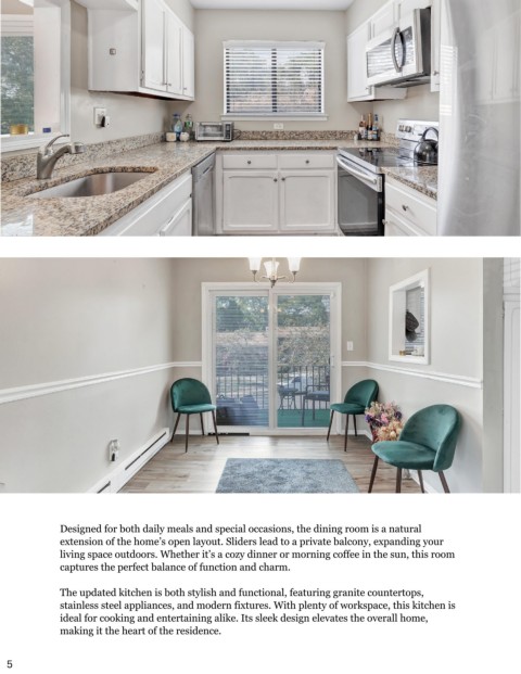 The updated kitchen is both stylish and functional, featuring granite countertops,