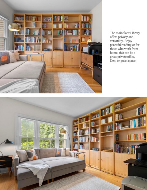 The main floor Library offers privacy and versatility. Enjoy peaceful reading or for those who work from home, this can be a great private office, Den, or guest space. 5