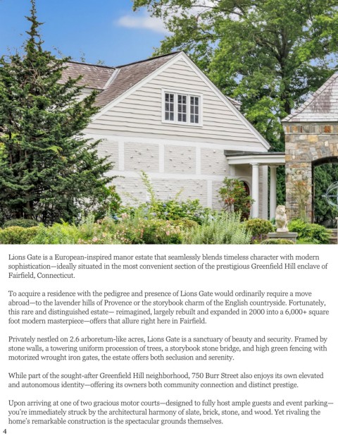 Privately nestled on 2.6 arboretum-like acres, Lions Gate is a sanctuary of beauty and security. Framed by