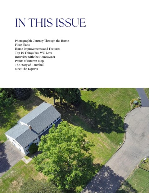 IN THIS ISSUE Photographic Journey Through the Home Floor Plans Home Improvements and Features Top 10 Things You Will Love Interview with the Homeowner Points of Interest Map The Story of Trumbull Meet The Experts 2