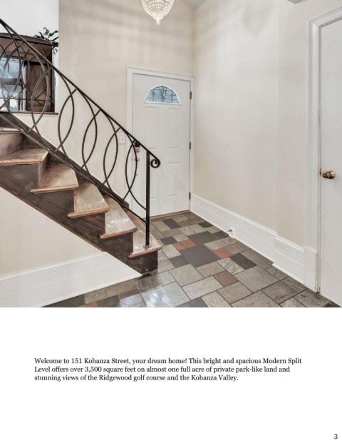 Welcome to 151 Kohanza Street, your dream home! This bright and spacious Modern Split Level offers over 3,500 square feet on almost one full acre of private park-like land and stunning views of the Ridgewood golf course and the Kohanza Valley. 3