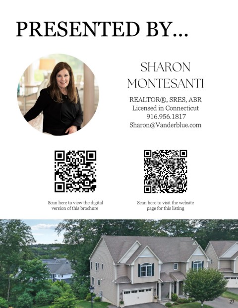 PRESENTED BY... SHARON MONTESANTI REALTOR®, SRES, ABR Licensed in Connecticut 916.956.1817 Sharon@Vanderblue.com Scan here to view the digital Scan here to visit the website version of this brochure page for this listing 27