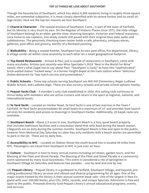 1) Charm & Character – The coastal enclave of Southport, Conn., is part of the town of Fairfield,