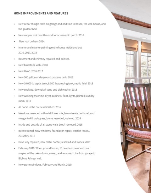 • New cedar shingle roofs on garage and addition to house, the well-house, and