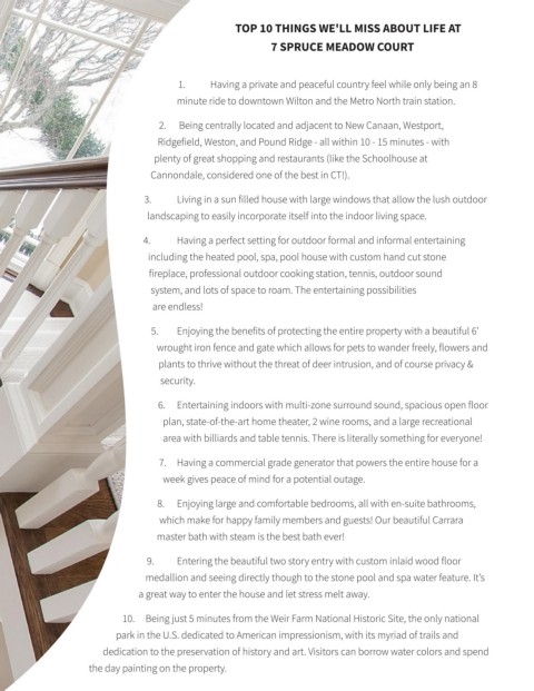 Ridgefield, Weston, and Pound Ridge - all within 10 - 15 minutes - with